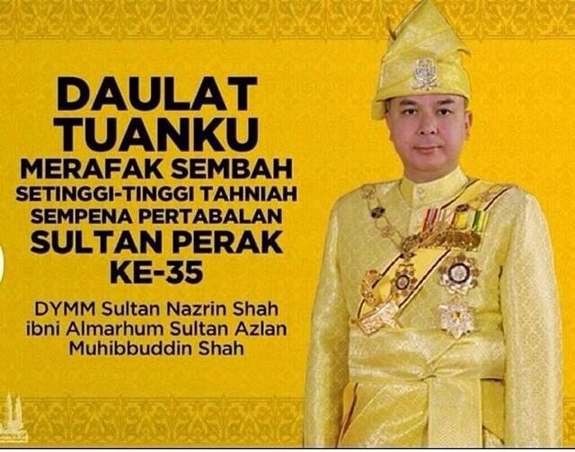 Tahniah diucapkan kepada DYMM Sultan Nazrin Shah Ibni Almarhum Sultan Azlan Muhibuddin Shah kerana telah ditabalkan sebagai Sultan Perak ke-35. Kami dari The Kuala Lumpur Chronicle yakin dan percaya dengan kepimpinan Tuanku negeri Perak Darul Ridzuan akan bertambah maju dan dirahmati oleh Allah swt. Semoga dengan kepimpinan Tuanku negeri Perak akan kekal aman, indah permai dan penuduknya hidup aman damai. Insyallah.